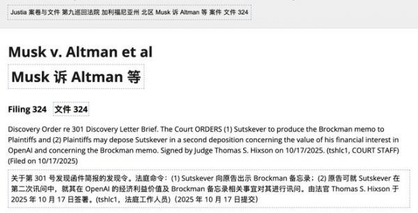 准确地说,这次「爆料」是法官针对马斯克诉奥特曼案的一份「取证裁定」。