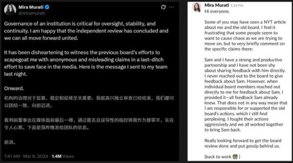 在奥特曼被罢免后,Murati曾短暂担任OpenAI的临时CEO。