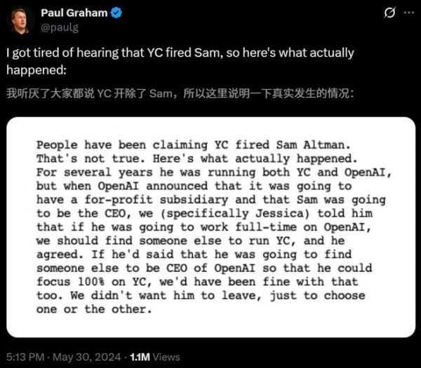 Y Combinator的联合创始人Paul Graham则否认该加速器曾解雇奥特曼。
