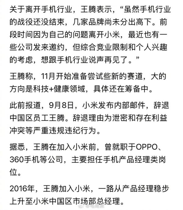 王腾回应泄密被辞退,半佛仙人:小米放了他一马,大家江湖不再见