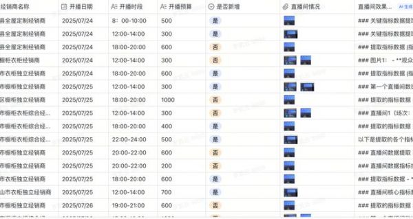 禾风一漾也用多维表格实现了直播间的全流程管理。今年双11,禾风一漾用飞书多维表格完成了五十多场直播的筹备[2]。从单场直播的前期商务选品、直播策略制作,到日常的账号运营统筹,都能够借助飞书实现实时分析与决策。