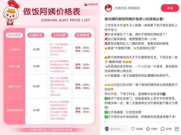 基于这个关键洞察,天鹅到家在官方账号和博主合作中,都新增了聚焦“白班保姆”“双职工家庭”的种草笔记,并给出透明清晰的价格表。