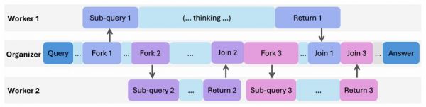 图|AsyncThink 的思考协议示例。该协议通过 Fork-Join 操作实现异步思考,从而控制思考轨迹。