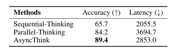 研究团队评估了 AsyncThink 模型在多解倒计时、数学推理和数独任务上的表现。实验表明,与序列思考和并行思考模型相比,AsyncThink 始终能实现更高的准确性,同时降低延迟。