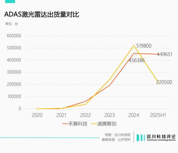 从去年出货量来看,禾赛和速腾聚创的ADAS激光雷达出货量占比,都超过90%。