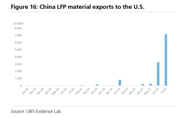 要知道,自今年6月以来,美国从中国进口磷酸铁锂材料呈现爆炸式增长,主要流向位于密歇根到密西西比的韩系电池工厂。