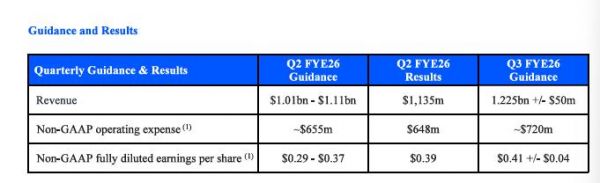净利润为2.38亿美元,稀释后每股收益0.22美元,去年同期为0.10美元;非美国通用会计准则下净利润为4.17亿美元,稀释后每股收益0.39美元,去年同期为0.30美元,高于LSEG所调查分析师平均预期的0.33美元。
