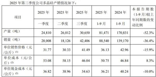 展望四季度:公司预计第四季度多晶硅产量 39,500-42,500 吨,2025 年全年预期产量为 121,000-124,000 吨。