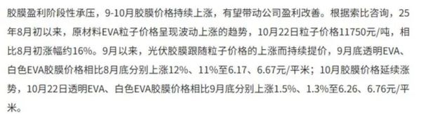 产业信息显示:胶膜产业链价格近期上涨明显