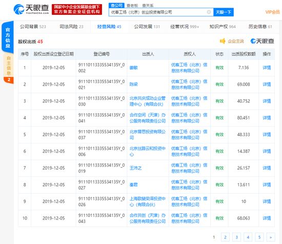 优客工场45位股东出质全部股权 或为赴美上市做准备