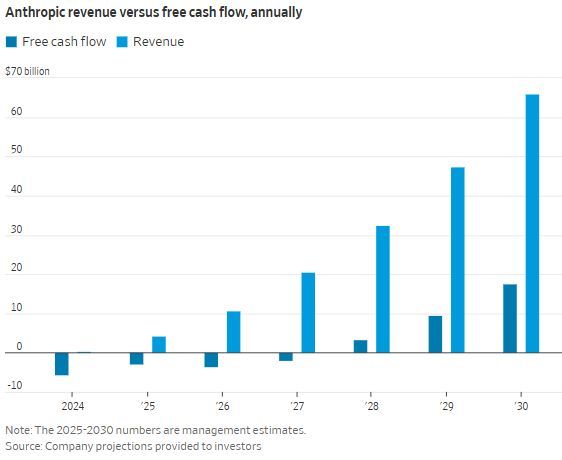 相比之下,不断加大“烧钱”力度的OpenAI预计该年运营亏损将膨胀至约740亿美元——相当于其届时收入的四分之三,这主要源于算力成本的激增。OpenAI之前预计,在2030年实现盈利(比Anthropic晚上两年)前,其现金消耗量将是Anthropic的14倍左右。