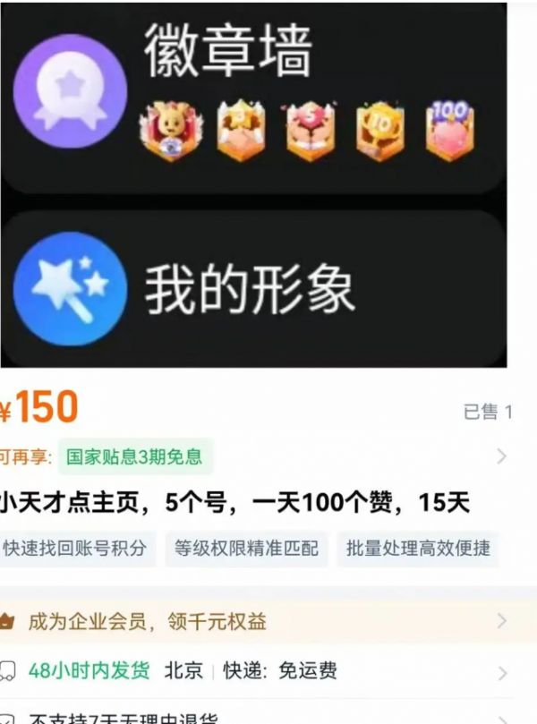“一块小天才手表里藏着100个‘好友’,主页点赞破50万——这样一个账号能够卖到500元。”近日不少网友在社交平台表示,“原来小天才是我们触不可及的社交圈子。”