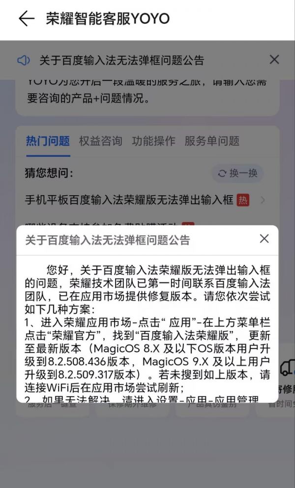 荣耀手机无法弹出输入框,用户打字聊天受限,输入法团队致歉