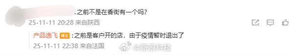 针对网友提出的“之前不是在香街有一个吗?”的疑问,产品逸飞回应称:“之前是客户开的店,由于疫情暂时退出了。”
