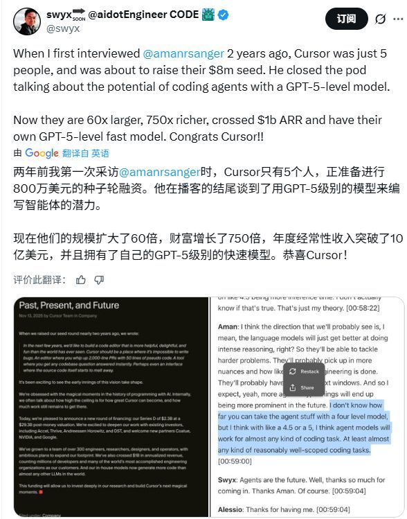 与此同时,Cursor 也面临着空前的人才争夺战。