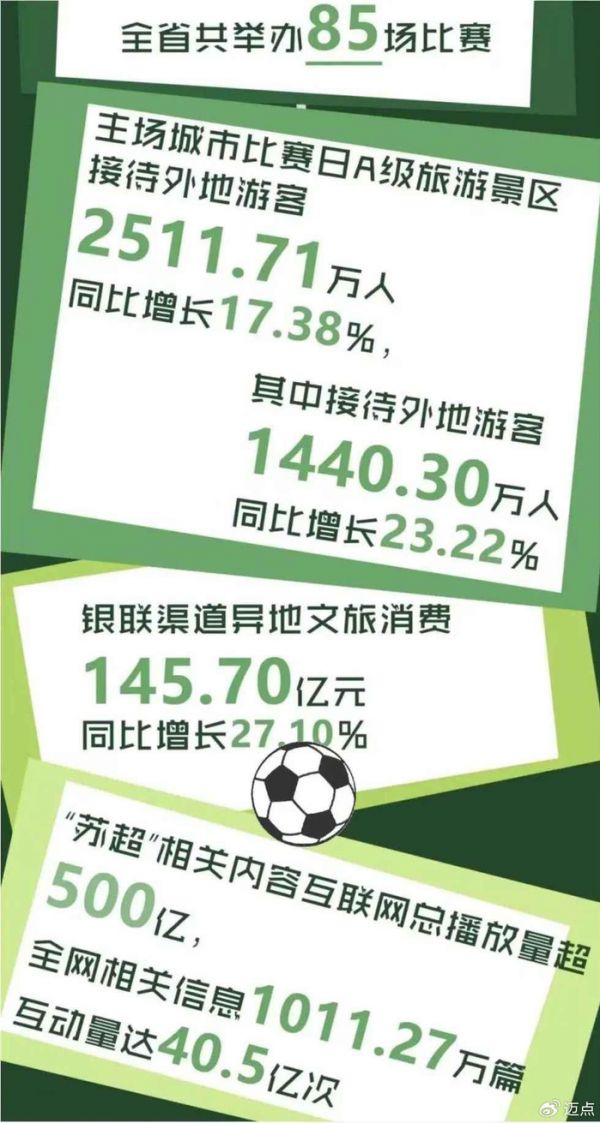 更聪明的是,这些圈层赛事把赛事变成了超级接口。苏超带动主场城市A级景区接待外地游客超2511.71万人。