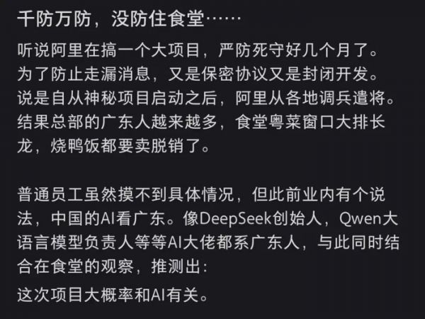 值得注意的是,阿里对此项目高度重视,核心管理层将其视为“AI时代的未来之战”。