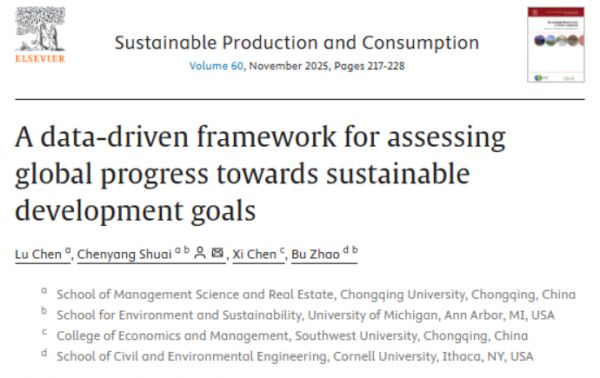 【专家视角】重庆大学帅晨阳副教授团队最新发文|评估全球实现可持续发展目标进展情况的数据驱动框架