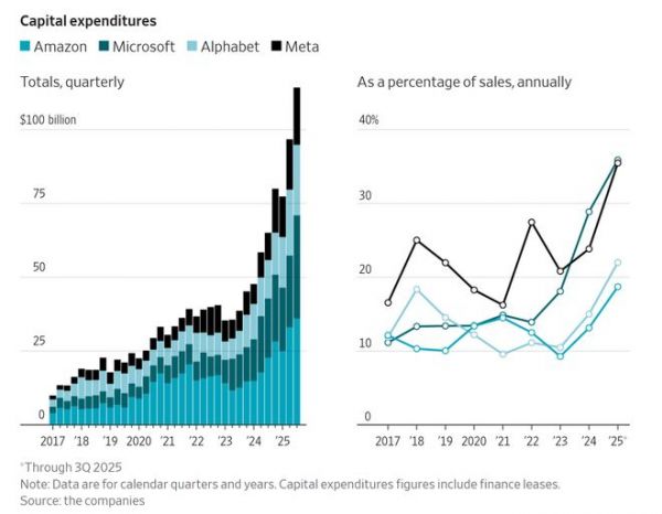 这种狂热直接转化为对 AI 超级计算机相关硬件的创纪录支出,涵盖了从芯片、服务器到暖通空调系统、变压器和发电厂的整个产业链。