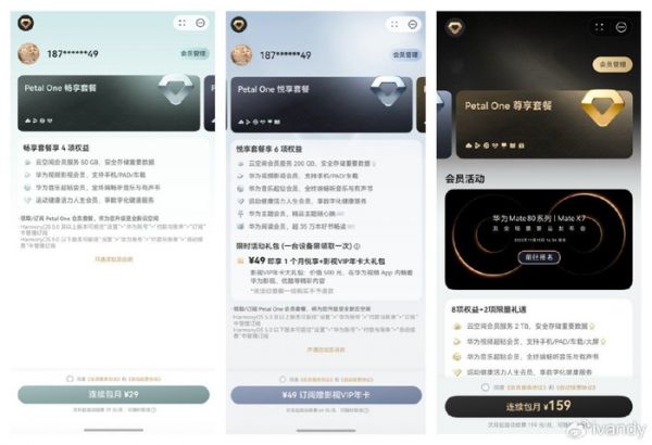 也许有朋友对Petal One不是太了解。简单来说,它是华为应用生态会员的“全家桶”,把云空间、视频、音乐、阅读、主题、运动健康等会员打包在一起,订阅一个套餐开通几个会员,无需一个个单独订阅,既省钱又省事。