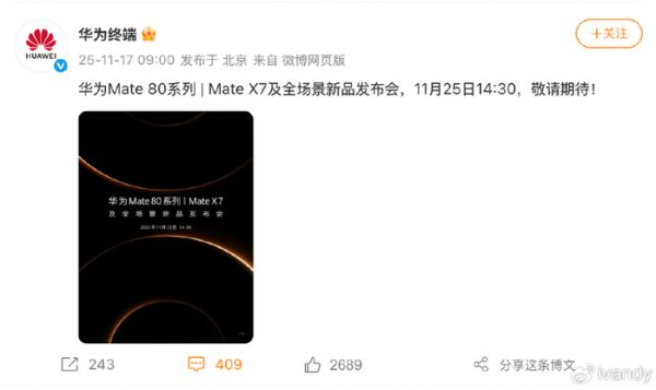 11月17日,华为Mate 80系列 | Mate X7及全场景新品发布会终于官宣了,也放出了预热海报。圈里都在猜它可能带来的惊喜。有人说会是影像技术的又一次颠覆,也有人说AI功能肯定再跃升。光看爆料哪过瘾?作为一个硬核花粉,我这次不打算隔着屏幕喊加油了,我要去现场!
