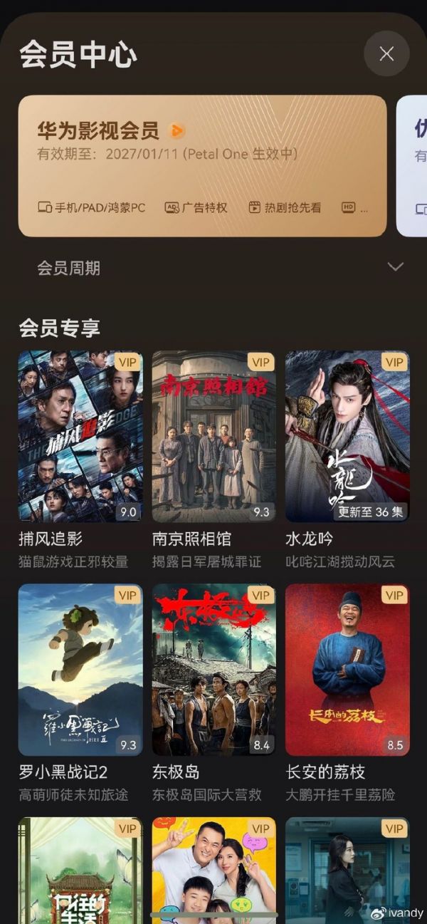 如果你准备上车Petal One会员,现在也是极佳的时机:订阅悦享或尊享套餐,官方还额外赠送影视VIP年卡大礼包!直接在华为视频内畅看华为影视和优酷视频的精彩内容!这波活动力度相当大,不仅能享受套餐内的多重权益,还能实现看剧自由,绝对的超值。