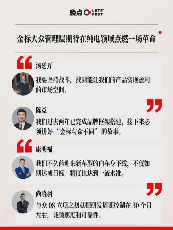 作为一个大众体系内 “再创业” 的团队,金标大众明年要在 6 个月内连续推出 3 款全新车型。这无疑是一个巨大的挑战,因为它不仅考验团队的整体协作能力,更要求金标大众必须从内部变革,打破旧有惯性,建立一套更敏捷、更适应中国市场的作战体系和组织文化。
