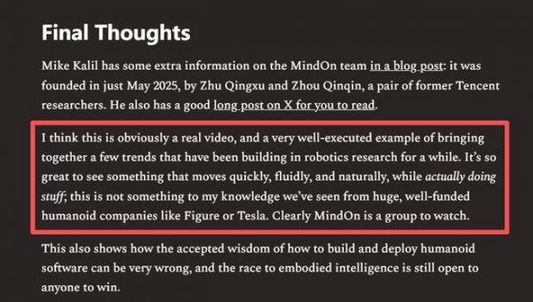 一位名叫Mike Kalil的美国科技博主更是发表长文,详细论证了为什么他认为灵启万物的视频“没有造假”