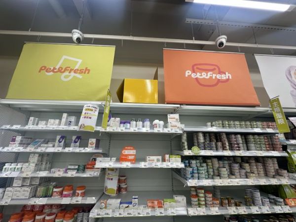 店内依旧以鲜食为卖点,部分区域售卖冻干产品、传统宠粮、罐头、医药、玩具等宠物用品。
