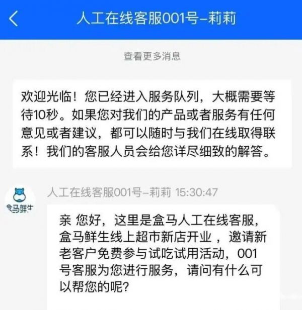 客服称“盒马鲜生邀请新老客户