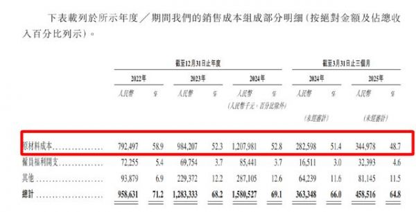在硬件设备上,通过低价卷市场已是行业玩家们的集体选择。从已经递交招股书的创想三维来看,2022年至2024年,原材料成本占销售成本的比例始终在50%左右,同期毛利率则一直维持在30%左右。