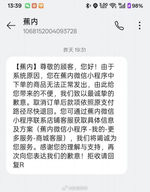 从法律角度看,消费者在平台成功提交订单并完成支付,买卖合同即告成立。蕉内单方面取消订单、仅以30元补偿了事的做法,已涉嫌违反合同约定,侵犯了消费者的合法权益。商家将问题根源推给“系统异常”,但既不公开说明原因,也不提供可信证据,看上去就像是把“系统异常”当成随意推卸责任的挡箭牌,将经营失误的后果转嫁给消费者。