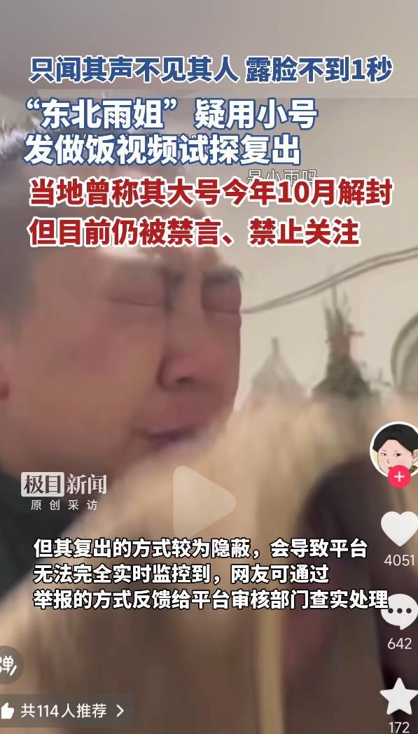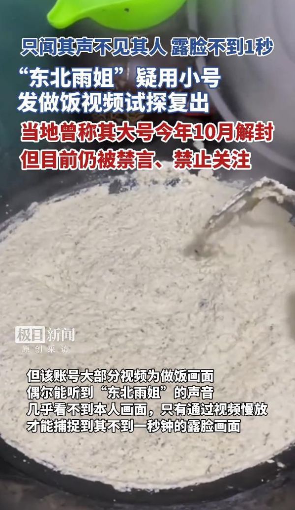 只闻其声不见其人,露脸画面不到1秒,“东北雨姐”疑用小号试探复出,此前当地官方称今年10月解封