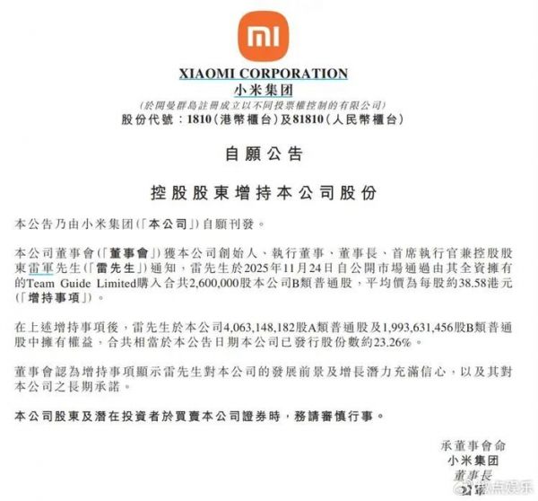与此同时,小米公司今年已累计回购超23亿港元。一边是创始人真金白银“押身家”,一边是股价跌得妈都不认,这画面,魔幻得让人想揉眼睛。