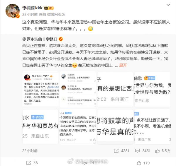 在热搜上,同样还有多个话题排着队关注这件事,各界大佬也是出来点评。比如魅族前高管李楠就发文力挺罗永浩。