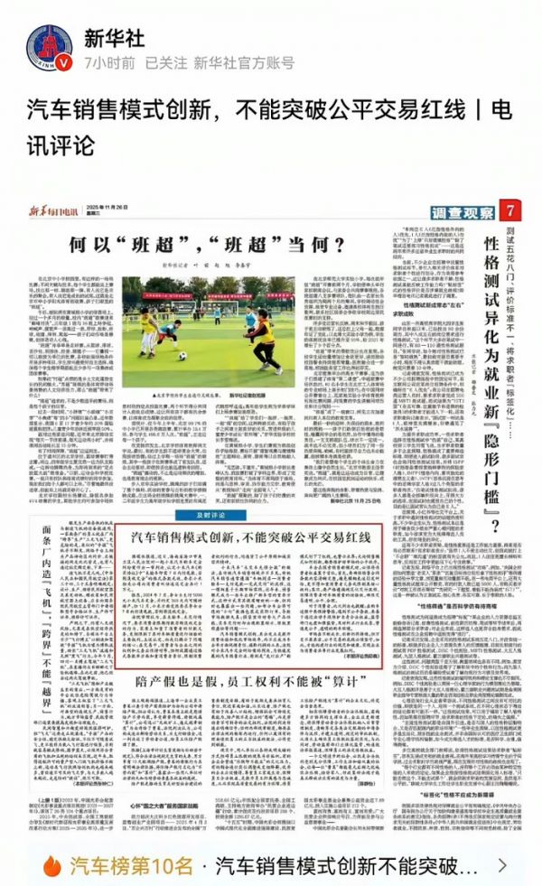新华社的两次发声,本质是“该夸的夸,该管的管”——市场要鼓励创新,但规则底线碰不得,车企不管怎么折腾销售模式,“消费者权益得放在最前面”。