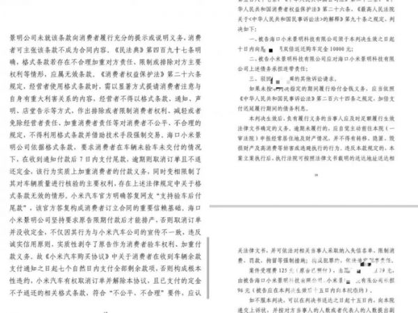 法院的判决不仅认定“未验车先付全款”的格式条款“不公平不合理”,还直接点出小米2024年5月公开说过“支持验车后付尾款”,实际做法和承诺完全相反,这是违反诚实信用原则。最终判小米双倍返还定金1万元,连带着关联公司也得担连带责任。