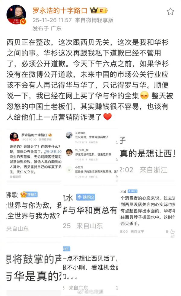 罗永浩称将公布录音,华与华老板未公开道歉