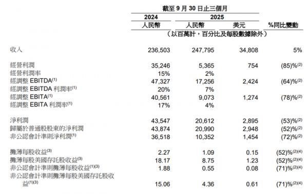 阿里巴巴Q2营收2477.95亿,经营利润同比下降 85%