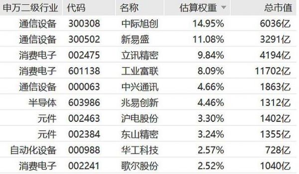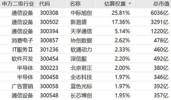 5G通信ETF 前十大持仓股:中际旭创、新易盛、立讯精密等