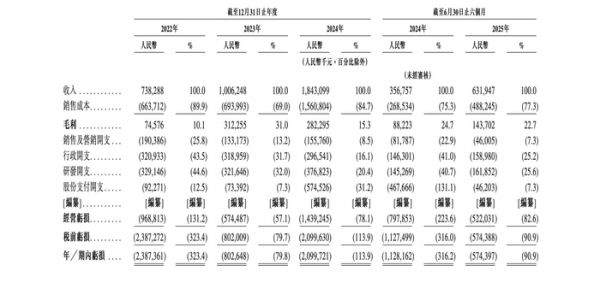 报告期内,特斯联的收入分别约7.38亿、10.06亿、18.43亿、6.32元,2022-2024年的营收年复合增长率达58%,今年上半年同比提升77%;毛利分别约7457.6万、3.12亿、2.82亿、11.44亿元,毛利率分别为10.1%、31.0%、15.3%、22.7%。