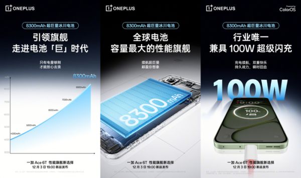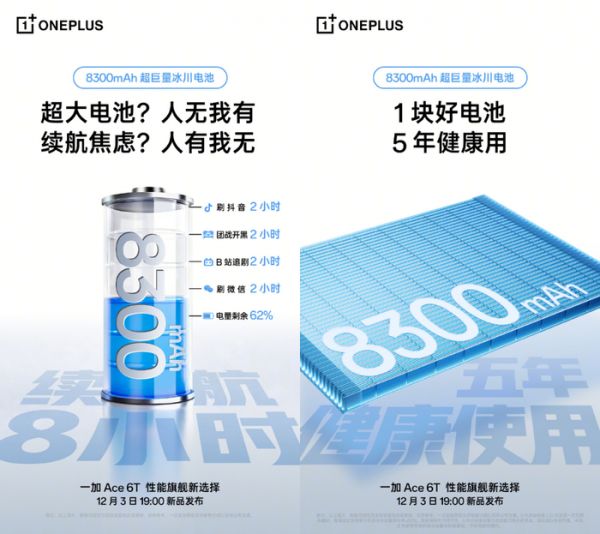 “#一加Ace6T#全球首发 8300mAh 冰川电池,