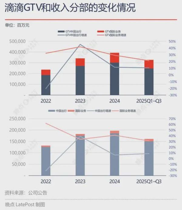 2025 前三季度滴滴国际业务累计 GTV 达到 804 亿元,同比增长 21%,2025Q1~Q3GTV 分别为 236 亿元、271 亿元、298 亿元,呈环比增长态势;2025Q3 滴滴国际业务的订单量保持 24% 的增长,GTV 实现 31% 的增速,投入产出效果明显。