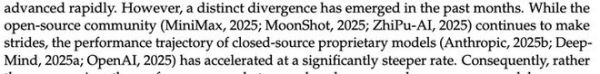 技术报告Introduction部分有句话值得注意,“过去几个月,开源社区虽然在持续进步,但闭源模型的性能轨迹正在以更陡峭的速度加速。差距不是在收窄,而是在扩大。”同时点出了当前开源模型的三个核心短板: