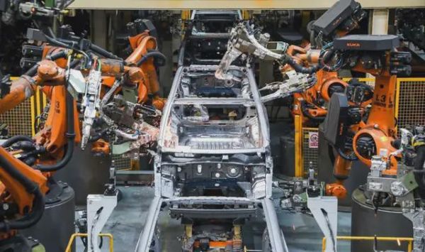 广汽传祺整车制造工厂焊装车间。