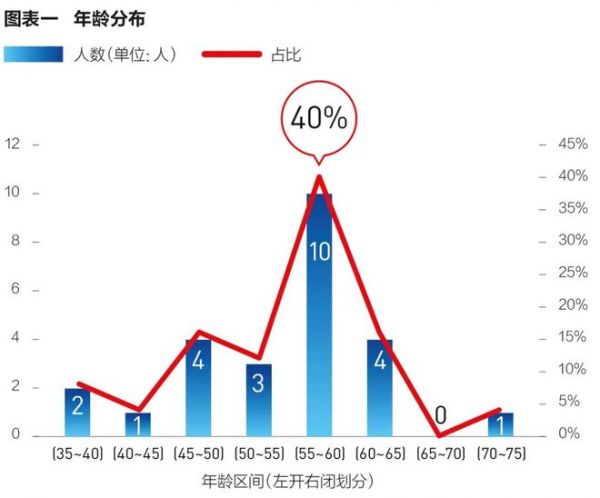 进入最终名单的25位企业家平均年龄55岁,其中年龄最大的是农夫山泉创始人钟睒睒(71岁),年龄最小的是首次进入名单的泡泡玛特创始人王宁(38岁)。年龄段55~60岁的人数最多,总体分布依然保持着两头小中间大的“橄榄型”结构(见图表一)。从籍贯来看,今年的分布较为集中,河南、安徽和湖北均有4位企业家,其次是山东和浙江各有3位企业家。河南是今年异军突起的一个省份,胖东来商贸集团于东来、牧原集团秦英林、泡泡玛特王宁和蜜雪冰城张红超均来自河南。再看申万一级行业分布情况:汽车有4人、商贸零售有4人、电子有3人,这也是今年进入最终名单人数最多的三个行业。需要说明一下,周云杰所在的海尔集团除了传统的家用电器外,旗下还有生物医药及大健康领域的上海生物、上海莱士和盈康生命,科技公司雷神科技以及金融平台众淼控股5家上市公司,行业间跨度较大,因此将其行业划分到综合(图表二)。