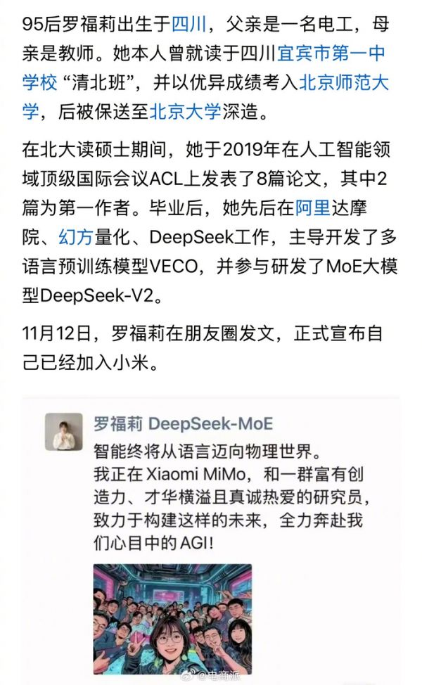 前DeepSeek研究员罗福莉已加入小米:全力奔赴心目中的AGI