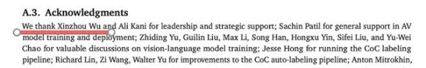 在论文的最后还有一个小彩蛋,致谢中排在第一位的正是英伟达自动驾驶负责人吴新宙。