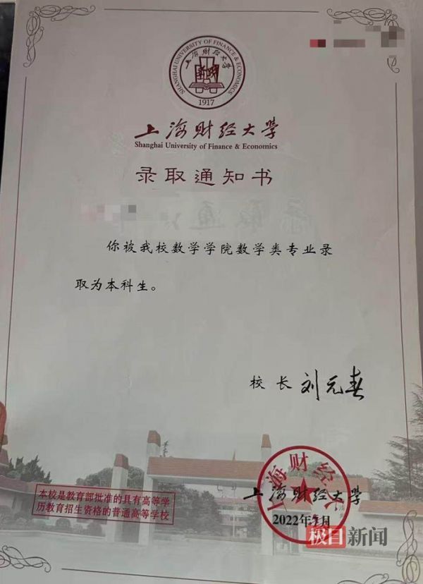 萱萱的本科录取通知书(受访者提供)进入上财后的萱萱,一直保持着高中学习的状态。在大学前两年,萱萱的成绩基本保持在第一名。大三时,萱萱所在的专业和其他班级合并,自己的成绩也一直保持在前5%。就这样,萱萱拿到了研究生推免资格。
