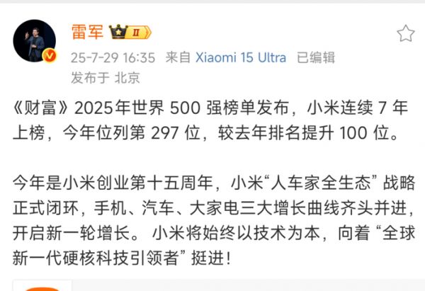 但今天,小米已经连续多年入选《财富》世界500强。